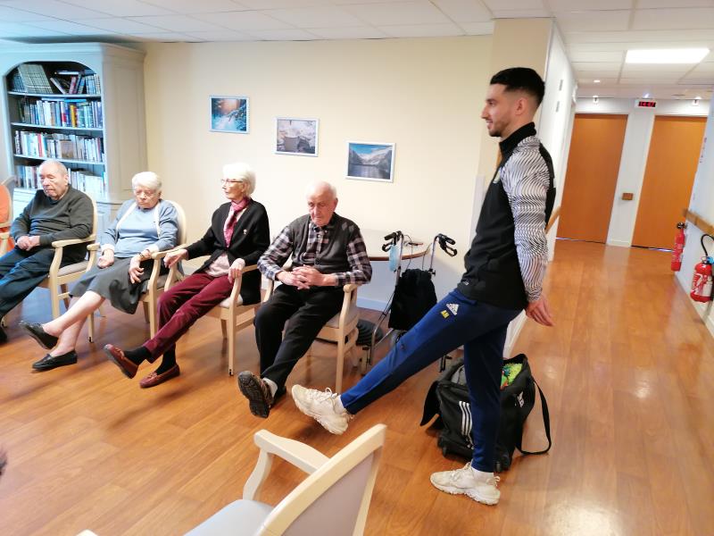 Le club de football de GUEUGNON intervient toutes les 3 semaines à l'EHPAD pour proposer une activité ludique et sportive aux résidents. Un moment convivial qui favorise le mouvement, le lien social et le bien-être de chacun.