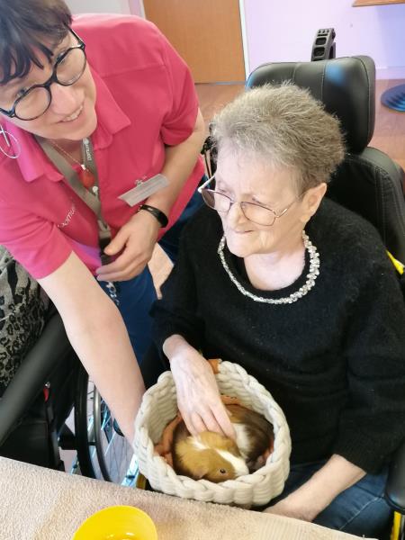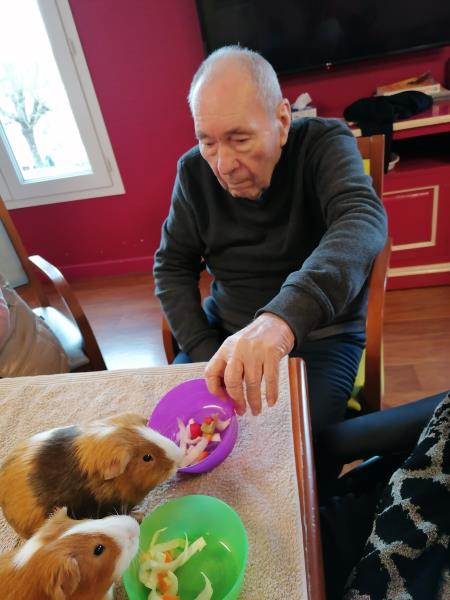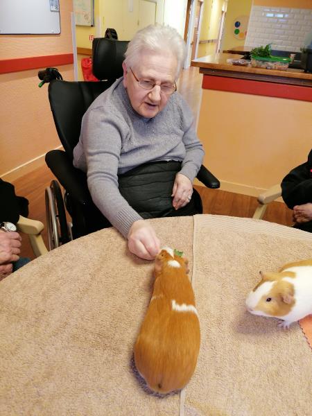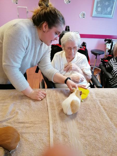 À la résidence médicalisée La Capitainerie de Digoin, la zoothérapie offre aux résidents de l’unité protégée et du secteur classique des moments de partage uniques en compagnie de chiens et de cochons d’Inde.